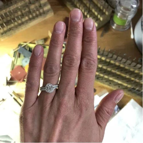 Diamantring im Smaragdschliff mit Halo-Roségold